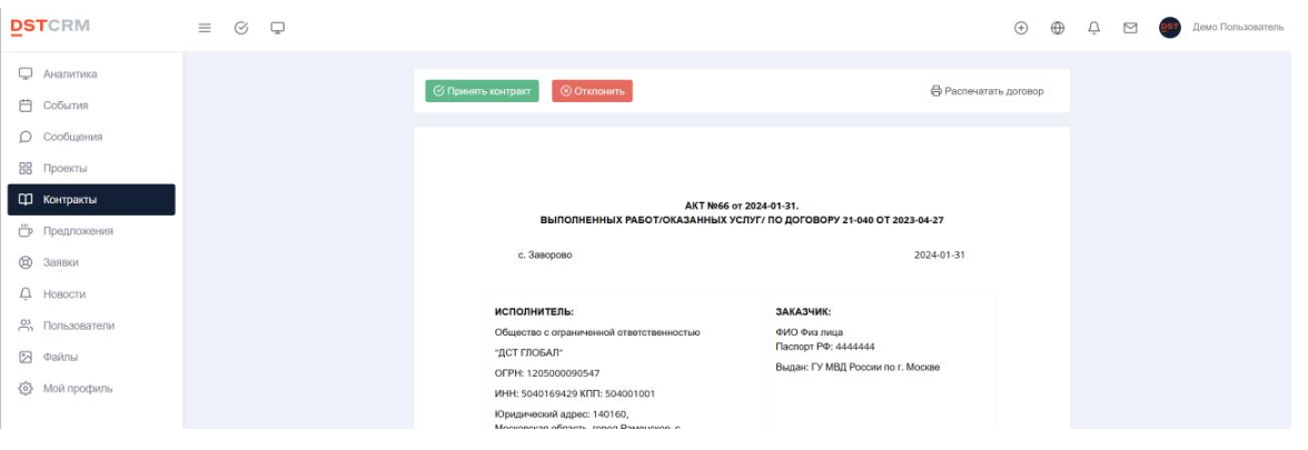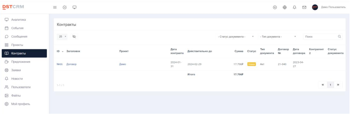Далее в левом меню выбираете раздел «Контракты» - в данном разделе вы можете видеть все