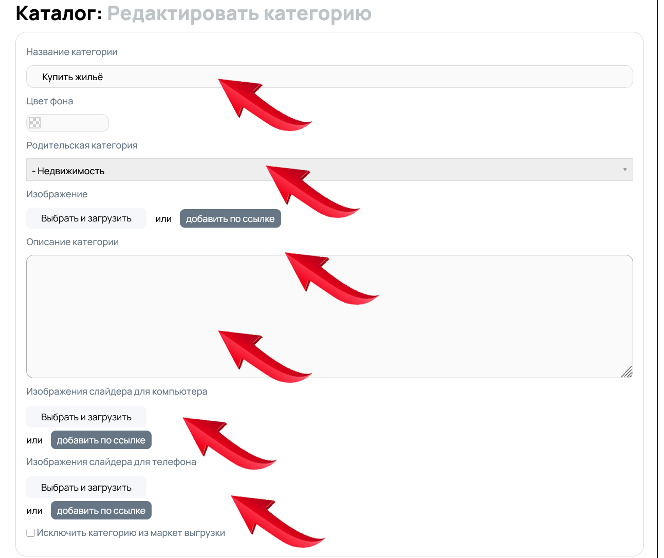 После нажатия кнопки «Редактировать», вы перейдете в форму настройки категории.
