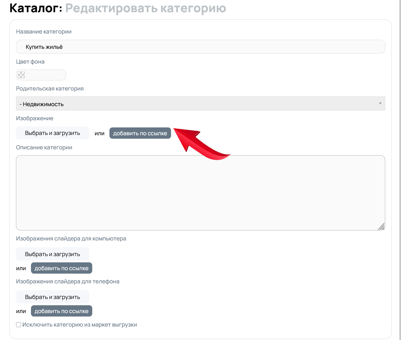 В форму загрузки «Изображение» можно загрузить картинку для категории. Картинки для категорий лучше делать одинакового стандарта, ориентировочный размер 500 x 500 px, квадратной ориентации. Картинки могут быть как с фоном, тогда лучше загружать в формате JPG, так и без фона, просто объекты, в таком случае используйте формат PNG.
